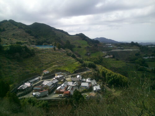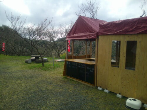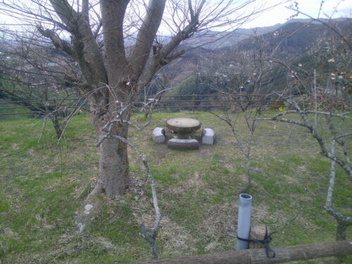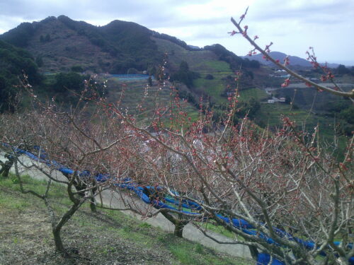 ②  斜面のいたるところに、梅の木が植えられています。