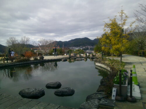 ① グラバー園・第2ゲートから、入ると池があります。